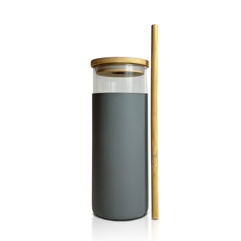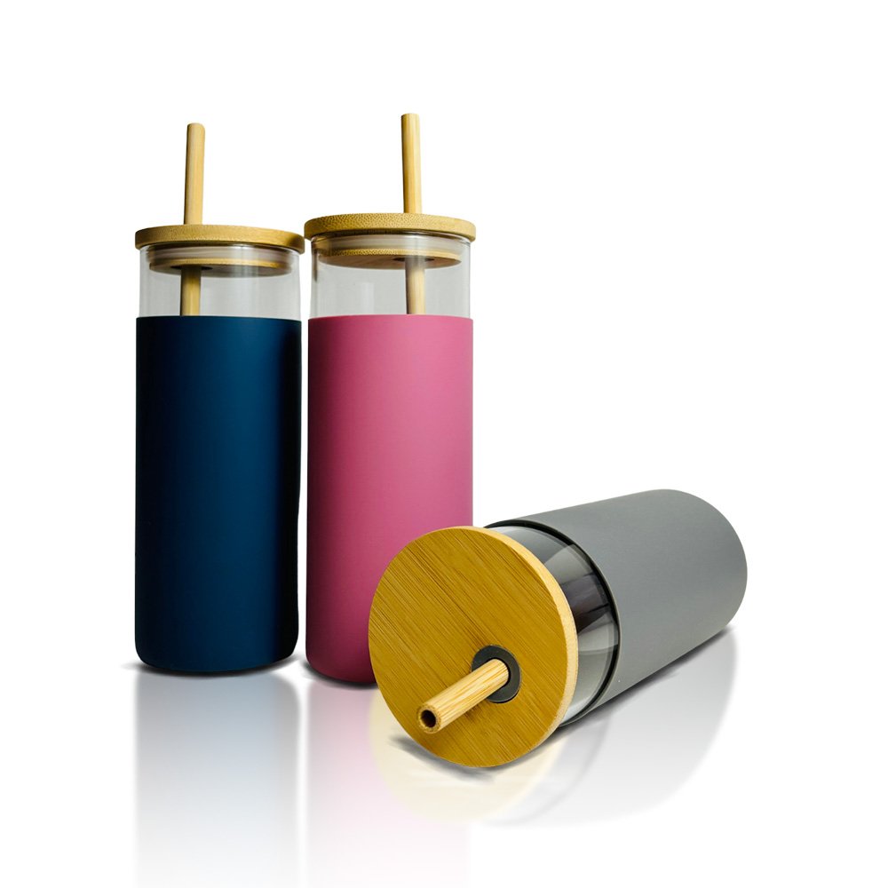 | BPA-Free | Eco-Friendly | Bamboo, Silicone Sleeve, Glass Tumbler